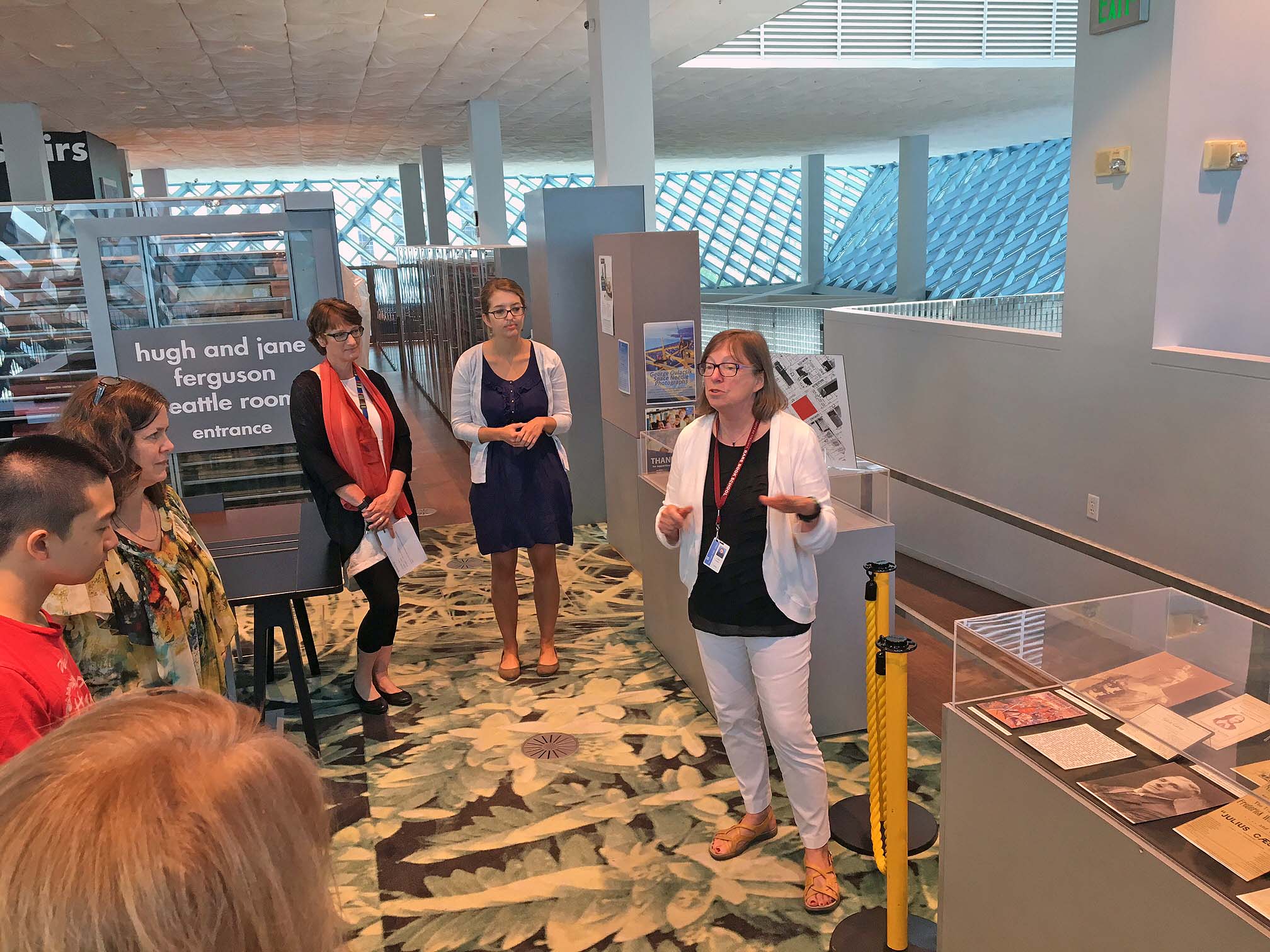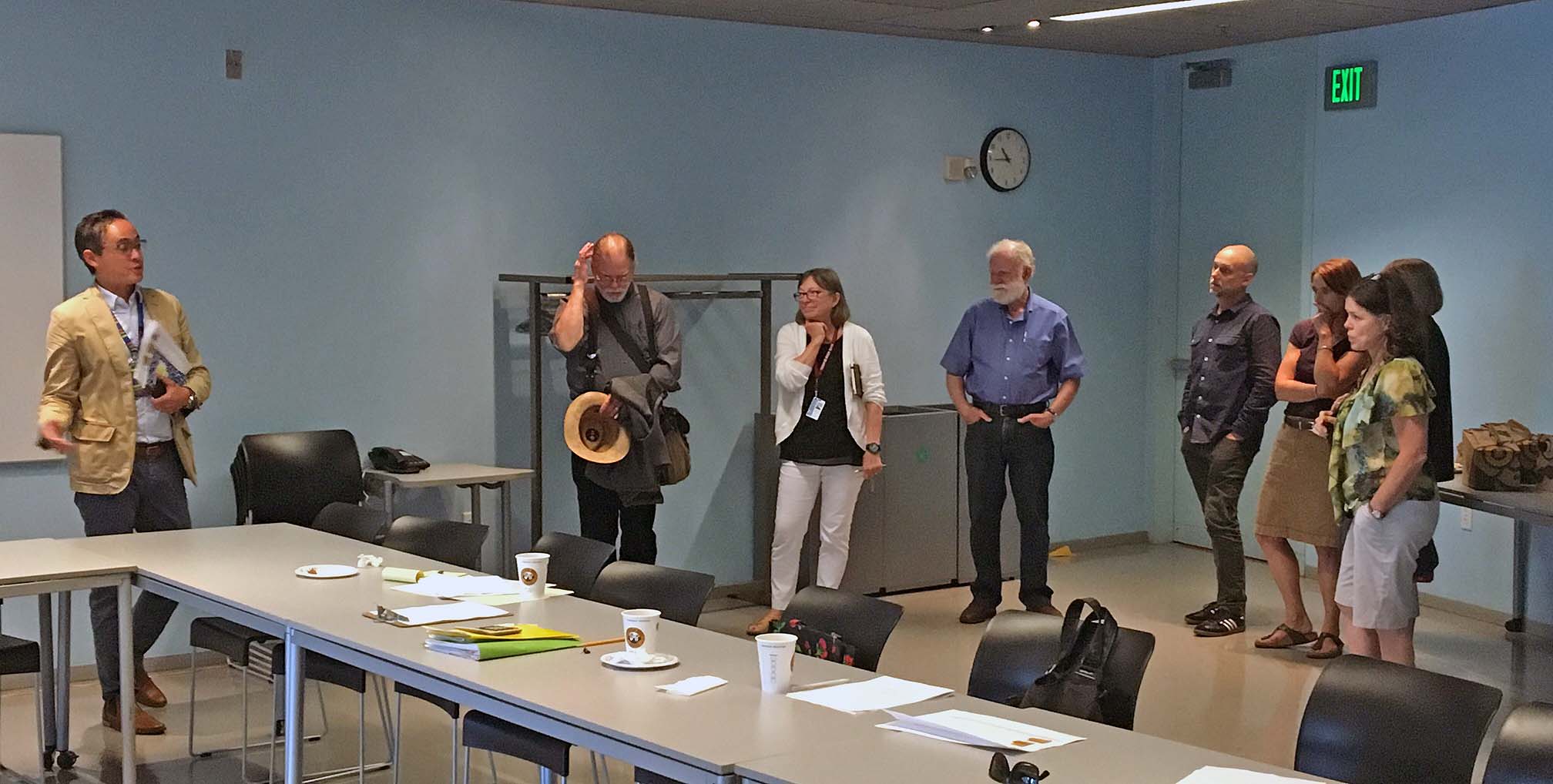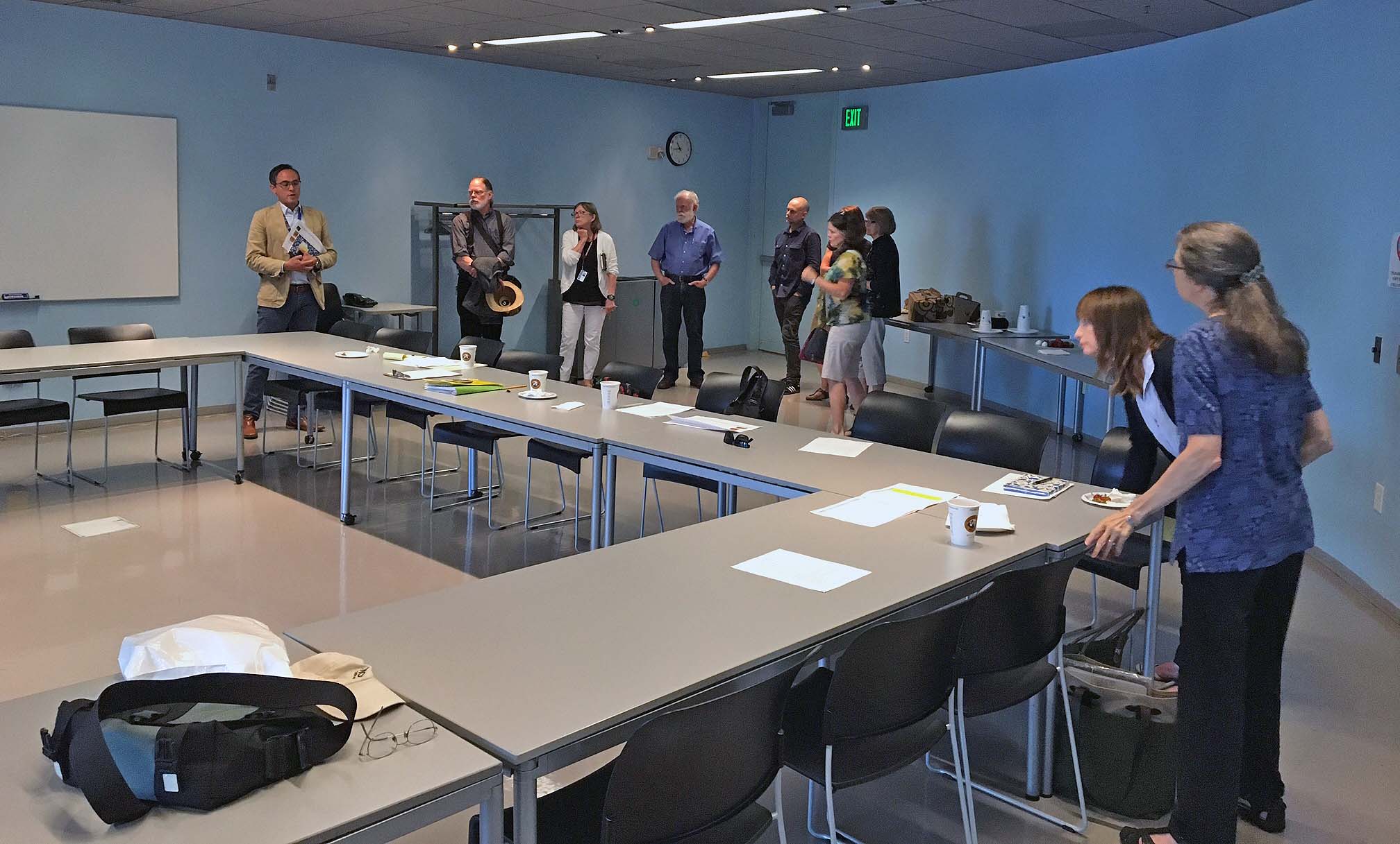 Our meeting was followed by a tour of several areas of the library. First, Andrew Harbison, Assistant Director of Collections and Access, showed us the areas where book selection and preparation occur, as well as the book sorting apparatus; next, Jodee Fenton and her staff walked us around Special Collections and additional storage areas on the 9th floor.