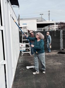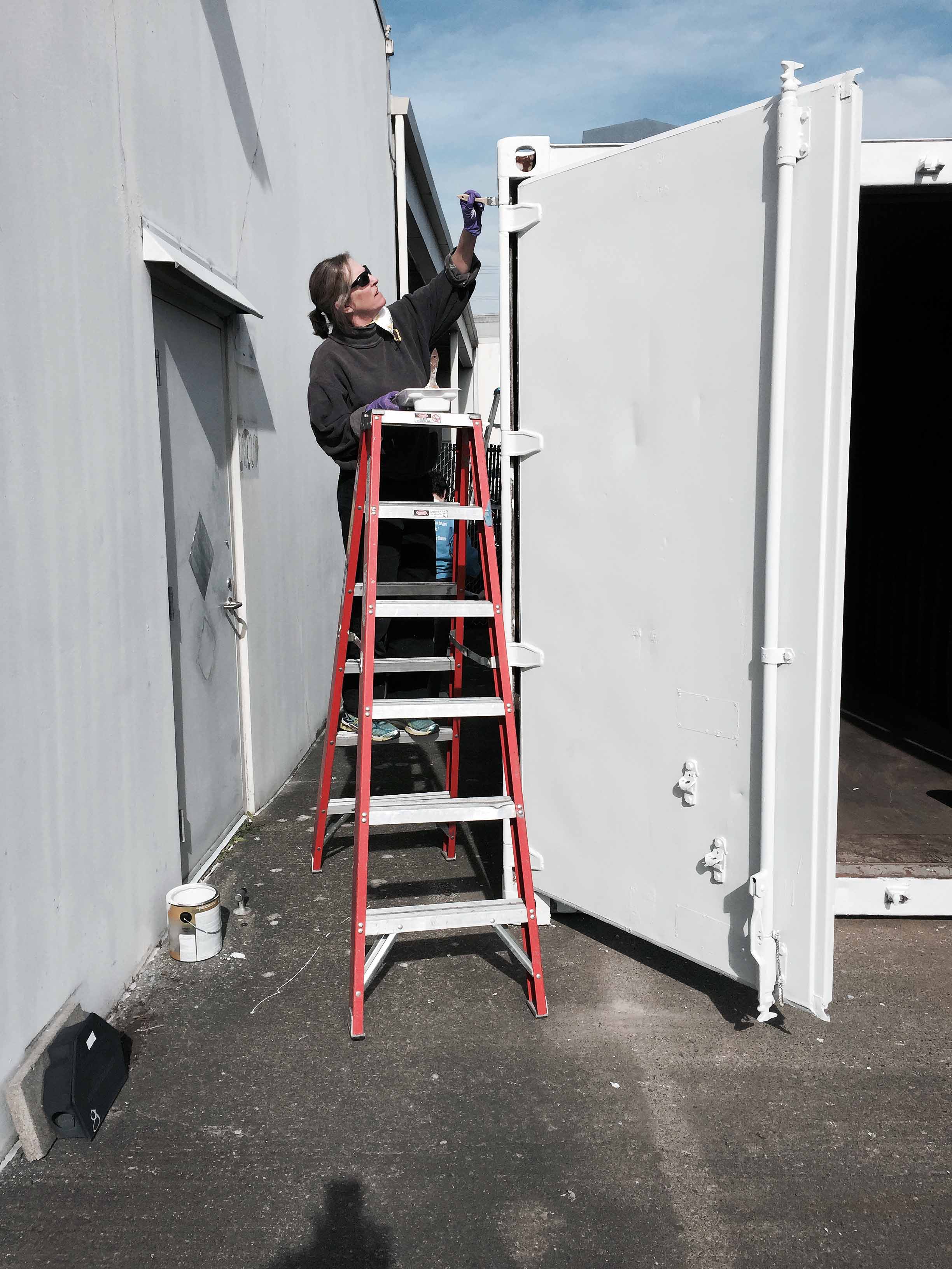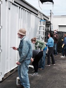 After a brief business meeting, we got down to painting our supply cache container! SHERN thanks the Museum of Flight for providing the container.